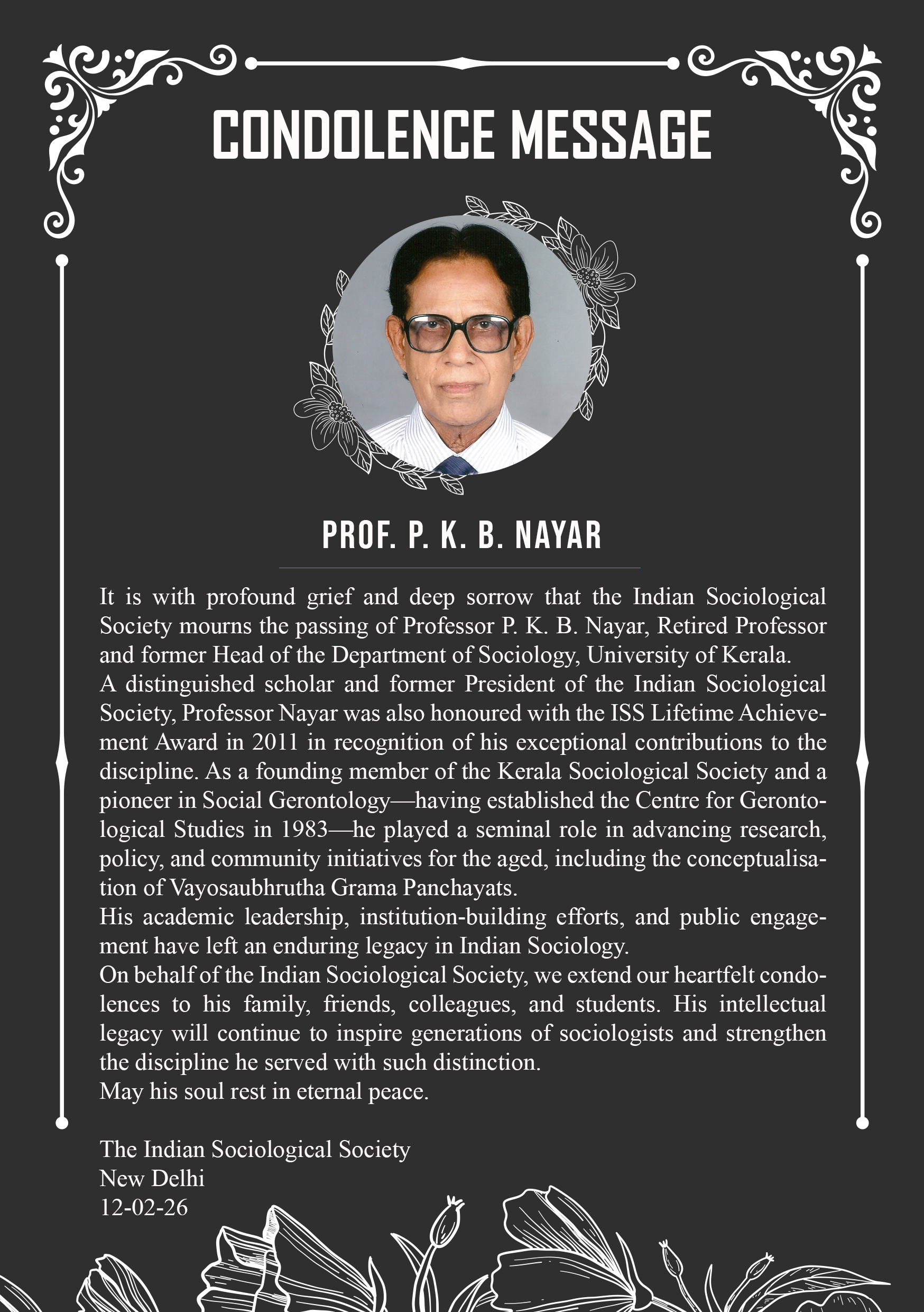 Condolence Message