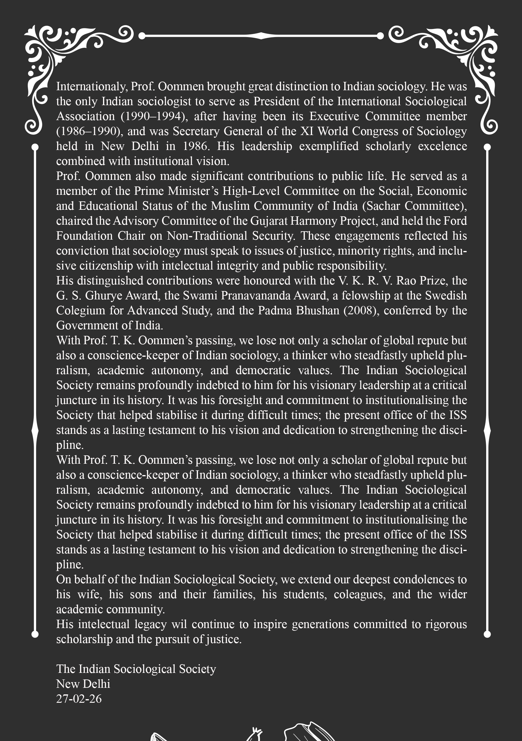 Condolence Message